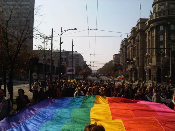 Na Paradu sam krenuo iz Belegiša, malog sremskog sela kraj Beograda. Za razliku od prošle godine žena me je pustila (hvala joj) jer je prošle godine bila jako uplašena i cele nedelje smo se svađali oko odlaska na otkayani PRIDE. To mi govori da je verovala, kao i mnogi, da nasilja neće biti. Tast nikako nije razumeo zašto se sve to radi ali nije, kao stari dobri vojvođanin, ulazio u nepotrebne rasprave. Ulazeći u kola razmišljao sam koliko će odavde krenuti ljudi, ali protivnika parade. Kako bi me gledale komšije da znaju gde idem? Da li odobravale? Žurio sam ka Zemunu da pokupim Draga i Anu jer smo se mi iz CMV dogovorili da idemo svi zajedno. Našli smo se ispred kancelarije gde sam parkirao i auto među drugim automobilima koji su tu bili parkirani. Tu već primećujemo pojedince vrlo slično obučene koji stoje pojedinačno ili u parovima. Radnica u “Pink panteru” (Novopayarski ćevap) na glas psuje i kune učesnike Parade. Marija, koja je došla sa Krsta nas informiše da je oko hrama i u Mekenzijevoj već bilo manjih incidenata.
