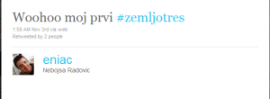 a odmah za njim i Nebojša koji je prvi upotrebio i #zemljotres