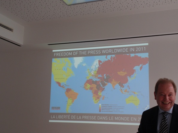 Markus je jedan simpatičan čovek koji me je jako podsetio na Dejana Verčića, kako izgledom tako  i načinom na koji govori. Njegov posao je da se susreće sa raznim ljudima: predstavnicima NVO, opozicija, manjinskih grupa… On se i drugim zemljama, susreće sa ljudima ili ide na mesta gde ministar  Vestervele to ne može. Iz razgovora se tema slobode i sloboda nametnula kao najvažnija. Pohvalio je Srbiju i poručio je: „Vi ste dobro došli u EU, shvatite proces priključenja kao sredstvo da menjate vašu zemlju.“ Još  jednom je pomenuo Srbiju u pozitivnom kontekstu kada je govorio o prošlogodišnju Rezoluciji UN i promeni srpske politike. Lepo je bilo slušati pozitivne stvari o svojoj zemlji. Problemi koje imaju društva u Uzbekistanu, Singapuru, Saudiskoj Arabiji … su upravo nedostatak sloboda. Iznenadio sam se za Republiku Singapur. Ja sam njih doživljavao kao modernu i prosperitetnu zemlju. Oni su prve slobodne izbore imali tek nedavno. Kod njih još uvek postoji smrtna kazna.  Ljudi ne razumeju tajnost glasanja. Vlast hapsila opoziciju jer je delila letke…. Ključno  pitanje koje je Markus pokrenu je pravo na slobodu i jednaka prava za sve. Poručio je da nema napuštanja univerzalnih ljudskih prava zarad kulturoloških razlika, na čemu su insistrali prijatelji iz Saudisjke Arabije. Društva su ta koja se moraju promeniti.