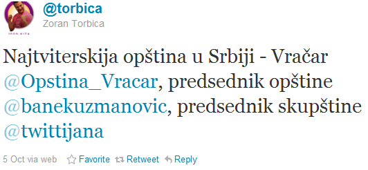 Gradska opština Vračar je već neko vreme na Twitteru. Primećeno je nekoliko akcija koje su izazvale reakciju i klasičnih medija kao i online zajednice. Oni na najbolji mogući način pokazuju kako se vodi dijalog sa građanima i kako se pravilno upotrebljava Twitter. Nekoliko primera u kojima su rešili probleme sa nedostajućim šahtovima, zakazivanjem matičara, odgovora pravobranioca, konkursa za obnovu fasada… pokazuje upravo reputaciju „tviteraške“ opštine koju su dobili. Oni mogu biti dobar primer i drugima kako Twitter može da se koristi i promoviše kao kanal komunikacije.