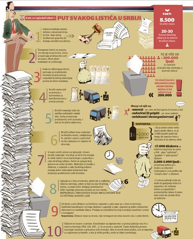 Ja nisam neki ekspert ali znam osnovne stvari o tome kako proces funkcioniše. Kada se otvara biračko mesto (BM) zajedno sa prvim glasačem ubacuje se i kontrolni listić. Izborni proces prati stalni sastav biračkog odbora (BO) koji čine predstavnici stranaka koje su na poslednjim izborima činile Skupštinu Srbije, kao i prošireni sastav u koji ulaze predstavnici i predstavnice svih stranaka i lista učesnika izbora. Ako je bilo 18 lista na izborima za Skupštinu Srbije to znači da je na svakom BM bilo bar 40-ak ljudi angažovanih tokom izbornog dana, od koji smo bar 25-30 mogli da vidimo dok smo i sami glasali. Kada se glasanje završilo otvorile su se zapečaćene kutije i krenulo se u brojanje glasova, prvo za predsedničke izbore, pa za Skupštinu i na kraju za Vojvodinu, lokalnu samoupravu, mesnu zajednicu… Svi oni koji su bili na BM, znaju da je brojanje trajalo do ranih jutarnjih sati 7. maja. Kada se prebroje listići sastavlja se zapisnik koji svaki od predstavnika/ca stranaka iz stalnog sastava biračkog odbora potpisuje, a ostali predstavnici/ce mogu upisati primedbe u zapisnik. Takav zapisnik se, sa kompletnim materijalom, transportuje u Republičku izbornu komisiju. Prigovori na izbore se dostavljaju u roku od 24h na šta Izborna komisija ima rok od 24h da ih reši, dok je drugostepeni organ sud koji takođe ima kratke rokove (mislim 48h) da donese presudu o regularnosti. Ovako otprilike izgleda kotrola i prebrojavanje na dan izbora, a ako sam u nekom koraku pogrešio slobodno me ispravite.