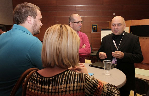 Zatim smo imali priliku da na 16 barskih stolova u 5 minuta razgovaramo sa predstavnicima izabranih organizacija. Svoj tour sam počeo sa Mrkom Rakarom i blogerskom pričom. Marka znam odavno ali nisam znao sve pojedinosti šta je on od 2004, od kada bloguje uradio. Recimo sajt Politika.hr je mesto kojej je on inicirao da se na njemu piše o politici. Samim tim je postao centralno mesto za politički dijalog u Hrvatskoj.