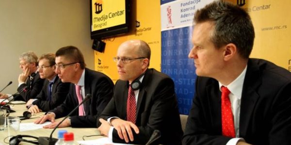 Ove nedelje sam bio pozvan na KZN poslanika CDU/CSU poslaničke grupe (oni kažu frakcije) iz nemačkog Bundestaga (parlament) koji su bili u poseti Beogradu. Verovatno znate da za razliku od nekih drugih država EU nemačka Vlada mora da traži saglasnost parlamenta (Bundestaga) oko svakog poteza koji može da utiče na proširenje EU. Takav im je Zakon. Tako da se još septembra 2012 javno pojavilo 7 uslova najjače poslaničke grupe CDU/CSU koji su uslov da bi Nemački parlament dao dozvolu za otpočinjanje pregovora o pristupanju Srbije u EU iliti kolokvijalno nazvanog dobijanje datuma. Ova delegacija je posetila pre Beograda i Prištinu da bi se od njih dobila informacije o njihovim stavovima. Ovu delegaciju su činili poslanici Bundestaga Andreas Šokenhof, Peter Bejer i Roderih Kizeveter, poslanik i izvestilac za Srbiju u Komitetu za evropske poslove Bundestaga Johan Vadepul, kao i spoljnopolitički savetnik frakcije CDU/CSU u nemačkom parlamentu Hans-Joahim Falenski. U starom dobrom konzervativnom maniru u delagaciji nije bilo ni jedne žene :(.
