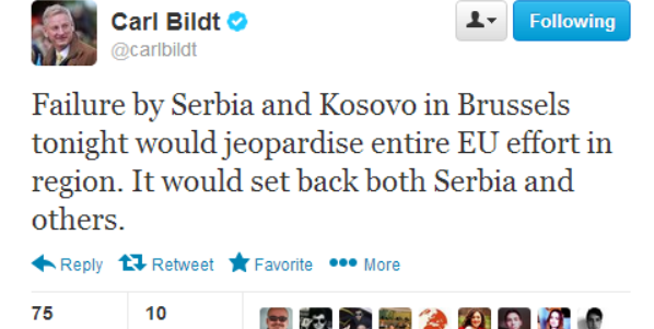 Isto tako mnogi su primetili da je Carl Bildt, Stefan Fule i Jelko Kacin imali šta da kažu i da podstaknu učesnike i učesnice dijaloga. Žao mi je što naša delegacija u svojim redovima nije imala ni jednog aktivnog tviteraša ili tviterašicu. Očigledno je da su trebali ovoga puta na put da povedu Mlađana da parira tvitovima EU zvaničnika i druge strane.