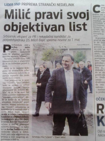 Obraćam Vam se povodom vesti objavljene dan 9.4.2015. godine u Vašem listu pod naslovom “Milić pravi svoj objektivan list”.