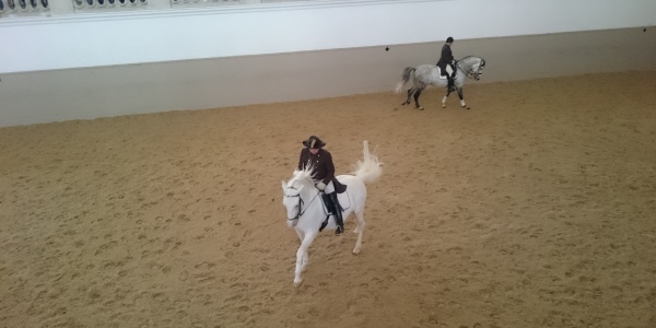 Neki od nas su jedva dočekali jutro. Ustajanje je bilo ekspresno. Svemu tome razlog je bio odlazak u Špansku školu jahanja. Jedna od najvećih atrakcija Beča omogućava da pored posete njihovim nastupima gledate i trening. Ko nije bio na nekon treningu jahanja nisam siguran da će ga ova dva sata impresionirati i ispuniti mu očekivanja. Tamara je bez daha gledala sve što su jahači/ce radili/e upijajući pokrete. Trening je organizovan tako da u 5 ciklusa izlazi po 5 konja koji treniraju oko 20 minuta. Jahači i jedna jahačica se smenjuju i uvežbavaju korake za nastup. U pozadini se čuje Štrausova muzika i sve je tako lepo. Muzika i konji. Ništa lepše.