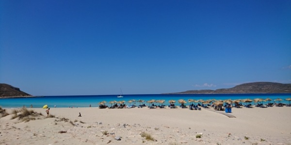 Kada dođete u Elafonisos idete levo putem pored obale do plaže Simos. Postoje tri puta, jer je plaža ogromna. Prvi je ka mestu Lefki i jednom resortu, mi smo izabrali drugi put koji vodi do Asimos plaže. Treći put je do sledeće uvale i plaže kojoj nisam zapamtio ime. Kao što piše na početku kada kročite na vreli beli pesak shvatate da ste došli u raj. Boja mora kao na Maldivima, pesak roze beo, a voda kristalno čista. Nije velika gužva uz mnogo mladog sveta koji se zabavlja.