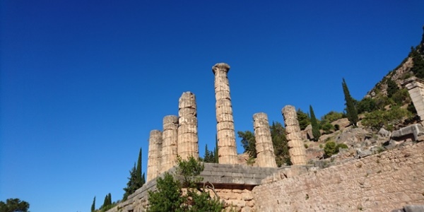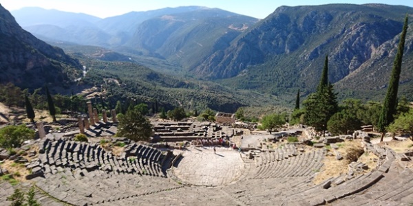 Nakon Lamia-e sišli smo sa autoputa i uputili se u planine. Nekako Grčku uvek doživljavamo kao ravničarsku zbog mora i plaža ali oznake za lance kraj puta i visoki vrhovi su nas vratili u realnost da je unutrašnjost zemlje i te kako brdovita sa planinskim vrhovima preko 2000 m/nmv. Fantastična priroda kroz koju smo prolazili nas je ostavljala bez daha. Nije ni čudo da se tu u okolini puta kojim smo išli nalazi nekoliko parkova prirode. Nakon nekih 1.30h smo stigli u Delfe da čujemo šta proročica Sibila ima da nam kaže.