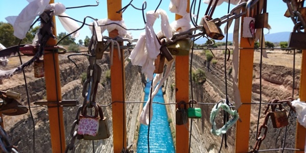 Korintski kanal deluje fascinantno. Nisam imao pojma da je on delo dvojice mađarskih inženjera koji su sve osmisli i isprojektovali. Mislim da uopšte ne može da se zamisli koliko je samo trebalo vremena da se u XIX veku iskopa kanal te dužine i dubine. Poruke ljubavi se ostavljaju i na ovom mostu a za one hrabrije moguće je skočiti bangie jump. Nismo imali sreće da dok smo bili na mostu da neki od brodova prođe kroz kanal.