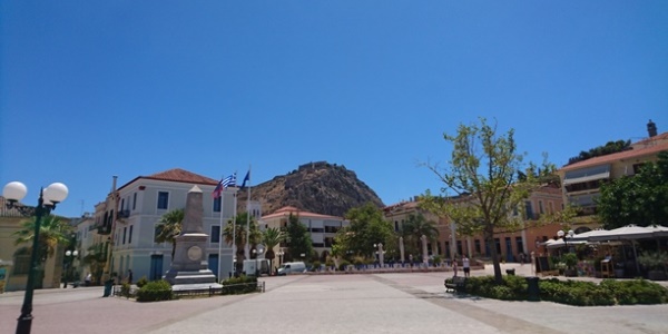 Nakon toga prešli smo na Peloponez i nastavili smo autoputem ka Nafplionu. Nismo imali vremena da obiđemo i Mikenu, koja se nalazi u blizini ali ako ste u prilici iskoristite i obiđite i ovo nalazište. Nafplion je sladak gradić sa ogromnom tvrđavom Pirgos palamidi iz vremena venecijanske republike iznad grada. Tu smo ručali u restoranu Lemone mada je po svemu sudeći za preporuku onaj koji je poslednji na kraju te ulice koja ide paralelno pored rive.