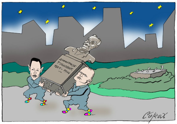 U prazničnu nedelju, ranom zorom dok Beograd spava, srušen je spomenik Dimitriju Tucoviću na beogradskom Trgu Slavija koji je tu postavljen pre 67. godina. Paradoks i velika sramota gradskih vlasti je da je za rušenje izabran državni praznik i to Dan primirja u Prvom svetskom ratu, u kome je inače Dimitrije Tucović položio svoj život. Ovim postupkom vladajuća većina pokušava da obriše antiratne, antifašističke i progresivne ideje koje je Tucović zastupao. Neće im proći!