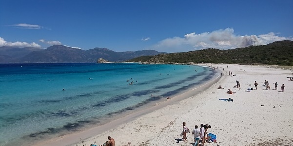Iz Saint Florenta – a smo uprkos svemu ipak odlučili da odemo na sever da vidimo Nonza plažu sa crnim peskom i da malo osetimo atmosferu Cap Corse. Kad dođete do Nonze shvatite da je silazak na plažu ozbiljan poduhvat jer treba preći stotine stepenica i savladati visnsku razliku od nekih 100 metara strme litice. Bili smo preumorni za to pa smo se vratili na usputne plaže koje su bile dostupnije. Uživanje u skakanju na ogromnim talasima je bilo za pamćenje. Stalno smo pogledavali na požar koji se očigledno nije smirivao.