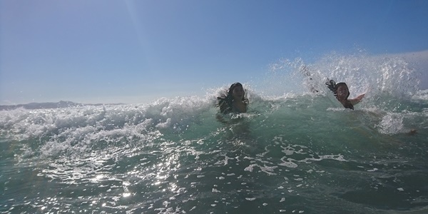 Kamp je divan, u šumi, sa mnoštvom bungalova, mestima za prikolice i šatore, akva parkom, sportskim terenima, igralištem za decu …. Pored kampa tu je i jedan od retkih hotelskih kompleksa na ovom delu obale. Na samoj plaži smo sreli jahačice i konje, što je T. ostavilo bez daha. Kupanje na talasima je bilo nešto što je postala naša svakodnevnica. Sama plaža je odlična, jer se može sedeti u prirodnom hladu, a opet biti blizu mora.  Istoimeni restoran na plaži je za svaku preporuku. Ova plaža nam se svidela tako da je to bila jedina plaža koju smo pretposlednjeg dan ponovili.