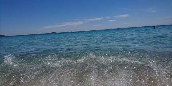 Posle tri sata vožnje i  5 sati puta jedva smo dočekali da se bućnemo u more. Plaža Porticcio je bila pravi izbor osim što zbog štednje vode tuševi na plaži nisu radili. Inače ni javne fontane na koje smo nailazili na drugim mestima zbog štednje vode nisu radile. Plaža je bogata sadržajima, čista i zanimljiva. U jednom trenutku oko ručka se skroz ispraznila da bi se oko 16h ponovo napunila. S obzirom na to da su barovi, restorani i diskoteka u zaleđu plaže pokazuje da je živo tokom čitavog dana i noći. Prvi put smo izbliza videli kanadere koji su bukvalno na samoj plaži tovarili vodu za požare koji su tih dana buktali širom Korzike.