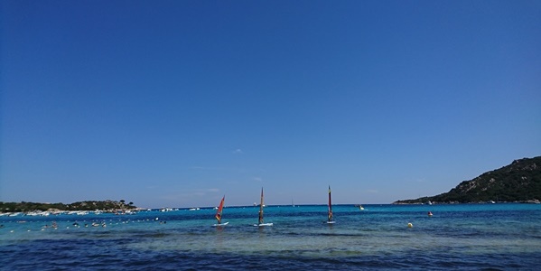 Santa Gulia je plaža sa water sport kerefekama (skuteri, jedrenje, gliser, čamci, pedaline, daske…) tako da za plivače i nema baš mnogo mesta. Uspeli smo da nađemo mesto ispod prekrasnog bora na ivici plaže i prirodna hladovina nam je baš prijala. Na ovoj plaži se plaća parking od 5€ dok su ležaljke 15 – 20€. Nakon kupanja otišli smo u Porto Vecchio. Mali simpatičan gradić na brdu i velikom lukom u podnožju. Ono što nam je bio utisak tog i svih drugih dana je velika pokretljivost turista na ostrvu i stalna cirkulacija ljudi.