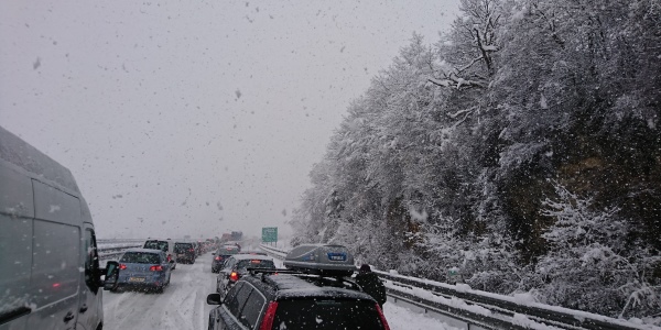 Krenuli smo u petak ujutru sa idejom da ručamo u okolini Trsta ali nas je jak sneg u tome sprečio. Bili smo tri i po sata blokirani na auto putu kroz Sloveniju. Moja impresija o Sloveniji kao organizovanoj i spremnoj zemlji se za tili čas srušila. Policija je zakazala i zakasnila da zaustavi šlepere koji su napravili haos klizajući se po putu i potpuno blokirali saobraćaj tako da ni čistači nisu mogli da prođu. Sva sreća pa nije duvao vetar, inače bi otrpavanje putnika iz smetova trajalo mnogo duže.