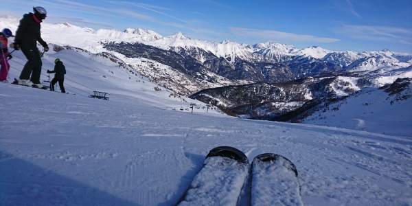 Što se staza u Montgenèvreu tiče, one su podeljene na dva dela. Prvi je onaj ispod vrha Le Chalvet na jugu, a drugi, veći, nalazi se ispod Rocher de l’Aiglea na severnoj strani mesta. Prvo smo otišli na južnu stranu i popeli se gondolom. Deca su odmah kukala da se umesto skijama spuste bobom, koji ide direktno ispod godnole ali dan je tek bio počeo. Zatim smo otišli levo žičarom ka vrhu Le Chalvet. Pogled sa vrha ostavlja bez daha. Odatle se desno spušta kratka ali odlična crna staza koju smo prošli dva puta. Zatim smo odatle spustili skroz Claviera gde smo vozili Col Boeuf i Serra Granet, divne crvene staze.
