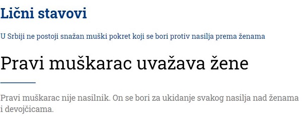 Mahalat je danas dala lep opis toga šta muškarci ne bi smeli da rade i govore. Postojeći patrijahalni model u kom smo odrasli, u kome živimo i vaspitavamo svoje dečake i dalje nas gura u tzv. „mušku kutiju“. Mi moramo iz nje izaći. Takođe zajedno sa drugim muškarcima moramo definisati nove oblike muškosti i uloge muškaraca u XXI veku. Što se tiče zaustavljanja nasilja prema ženama tu muškarci mogu doprineti kroz uticaj na druge muškarce, a naročito dečake.