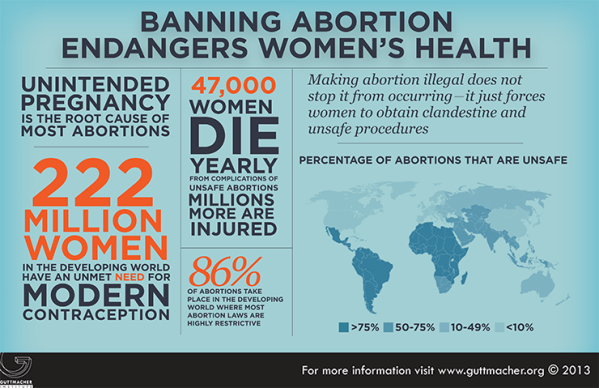 Rezultati mnogih istraživanja pokazuju da restriktivni zakoni ne smanjuju broj abortusa već naprotiv povećavaju broj nelegalnih prekida trudnoće u nesigurnim uslovima koji su opasni po zdravlje žene.