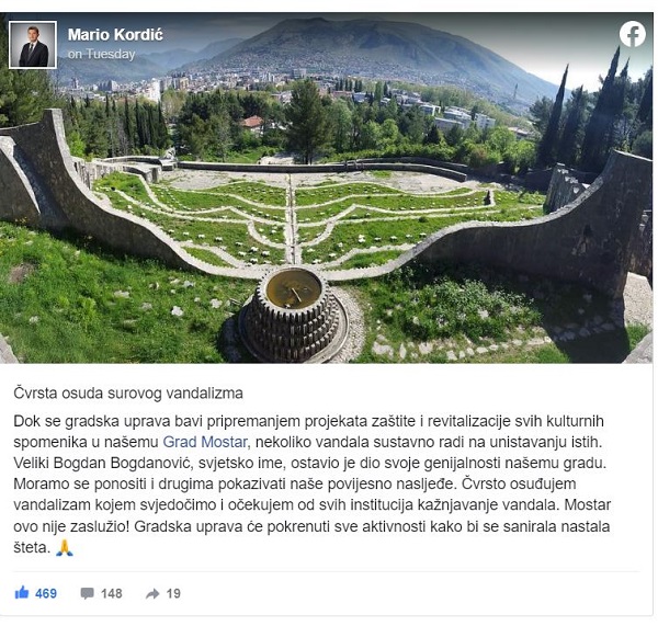 Prošlo je već 5 dana od rušenja Partizanskog spomen groblja u Mostaru. Vandali još uvek nisu uhvaćeni i svakim danom koji prođe sve su manje šanse da će se to i desiti. U i dalje podeljenom gradu Mostaru, gde je politika sve, očigledno je da će se sa hvatanjem počinilaca sačekati. Dobro je bar da su sve političke stranke osudile rušenje ali da li će “mrdnuti malim prstom” to je ključno pitanje.