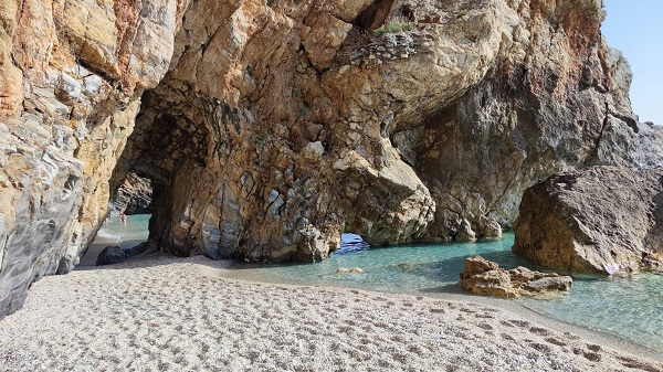 U severnom delu iznad plaže se nalaze dve pećine. Prva je Panagia Megalomata koja je puna pećinskog stalaktita, dok se malo dalje nalazi druga – pećina Krifo Scholio koja je za vreme turske okupacije služila kao tajna škola Tsagarade. Postoji planinarska staza koja vodi do obe pećine ali vam za nju trebaju patike.