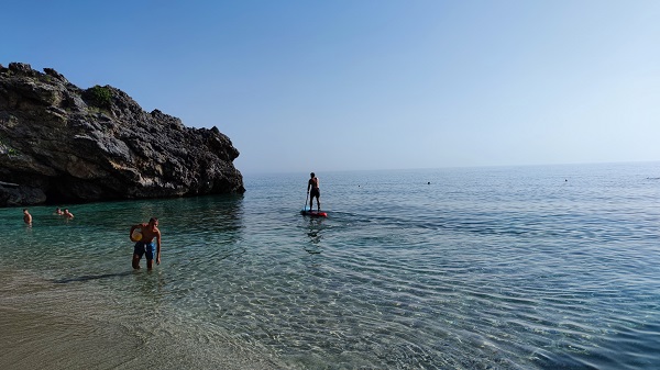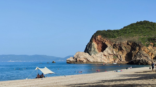 Morska voda na plaži je divna i kristalno čista sa nijansama plave i zelene. Ovo leto je za sve bilo izazovno, jer je bilo toplije tako da je i voda bila pretopla, gotovo bazenska. Plaža omogućava plivanje i uživanje kako kome godi. Na kraju plaže oni koji vole stene mogu da skaču. Iza te plaže postoje još dve plaže ali bez plažnog mobilijara.
