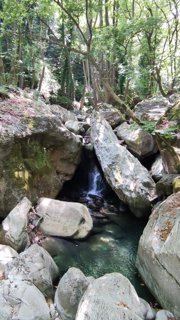 Posle ručka smo se uputili u istraživanje istočnog dela Peliona i odlazak do Zagore. Vožnja kroz šumu me je ponovo podsetila na Frušku goru. Stali smo usput da slikamo vodopade i rečice koje na nekoliko mesta presecaju put. Zagora je poznati deo Peliona pre svega po specijalnoj vrsti jabuka (Firiki).