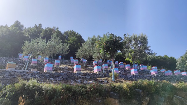 Trećeg dana smo odlučili da se prebacimo na Egejsku stranu Peliona. Prva plaža u ambicioznom planu nam je bila Milopotamos. Za početak trebalo je voziti krivudavim putevima Peliona do Cagarade. Zanimljivo je da su košnice na Pelionu postavljene i pored puteva. Med je savršen i morate ga probati.