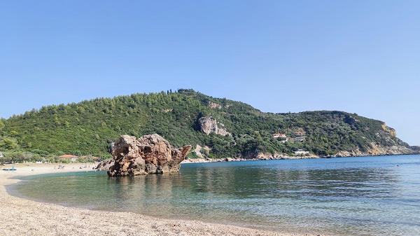 Tu smo se prvi put na Pelionu susreli sa tim da su sve ležaljke rezervisane ili zauzete i ako je bilo 15:00h. Limnionas je šljunkovita plaža. Njena glavna odlika su velike stene uz samu obalu. Voda mora je tirkizno zelena i izuzetno bistra. I ovde se mešaju slana i slatka voda. Na kraju plaže sa desne strane je još jedna mala plažica u pećini. Tu najčešće dolaze ljudi sa kajacima ili čamcima. Podsećam da ni na jednoj od ovih plaža nije bilo ni jedne jedrilice.