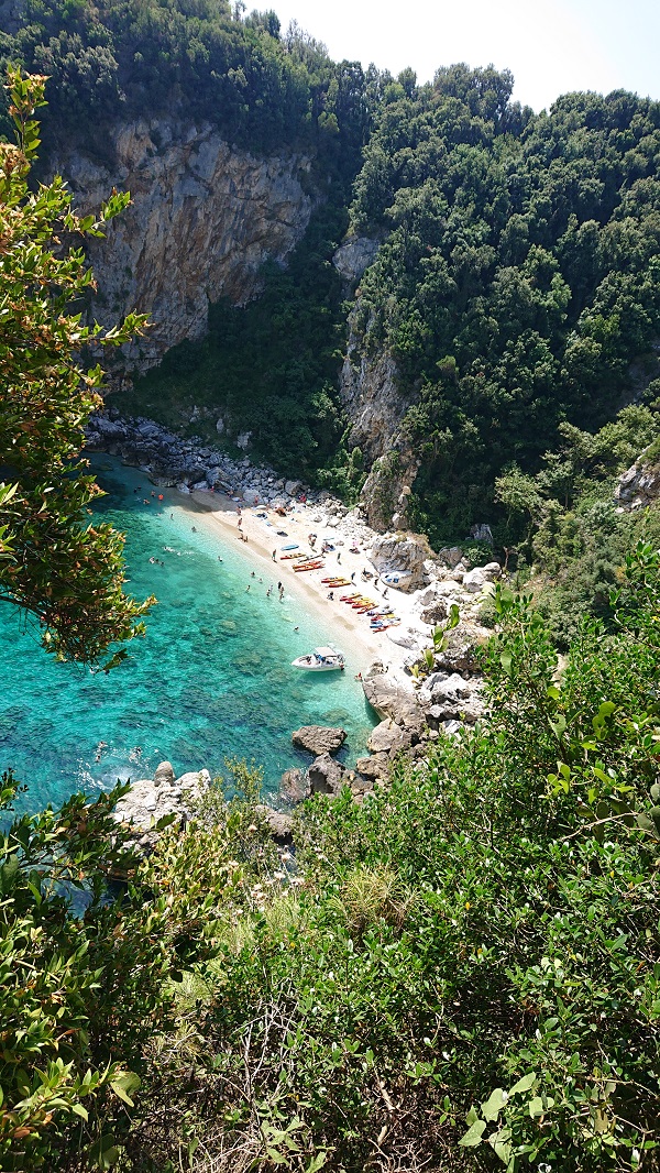 Sledeća Paltisi plaža nam se mnogo više svidela mada su i tu ležaljke bile rezervisane. Ona je zapravo velika uvala beskrajnog, tirkiznog mora, i za razliku od ostalih plaža na jugu, zaštićena je od severo-istočnih vetrova. Sa desne strane plaže nalazi se stena koja izgleda kao “zaspala aždaja”. Takođe sa te strane postoji i stena i mala pećina gde se možete sakriti u prirodan hlad tokom većeg dela dana.