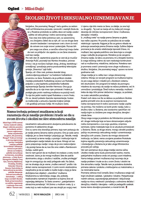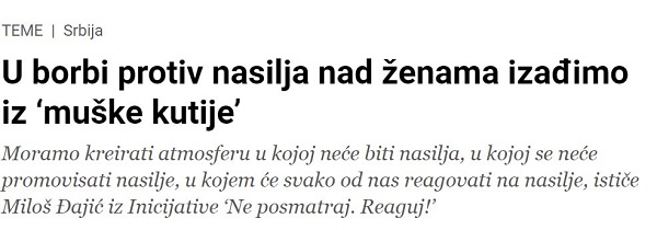 Čitav intervju za bosanskohercegovački portal Interview.ba možete pročitati OVDE “Kada sam ja pre 20 godina govorio o svakoj drugoj-trećoj ženi koja trpi nasilje govorili su mi u mojoj užoj okolini da preterujem. Sada posle 15-20 godina mi u familiji vidimo da su neke nama bliske žene trpele nasilje. Što se femicida tiče – naša društva su natopljena nasiljem. Mi smo imali ratove kao najbrutalniji vid […]